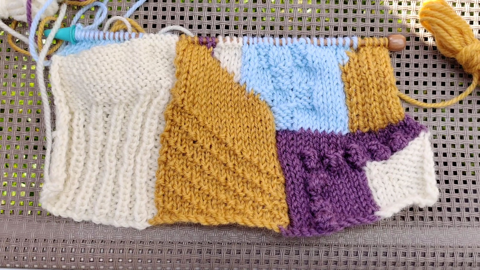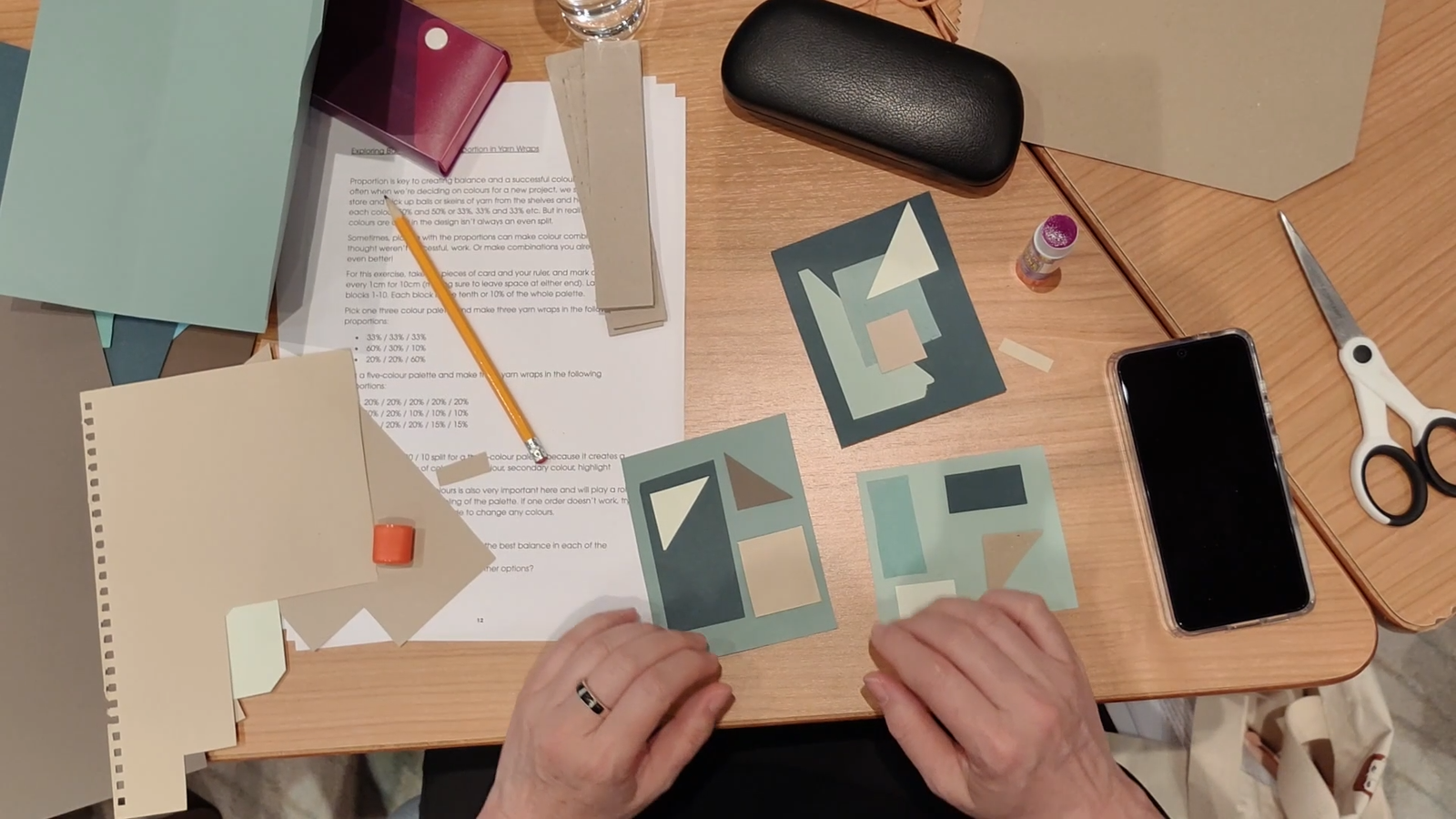 For the first retreat, we were joined by the talented Rowan knitwear designer Georgia Farrell, who’s aesthetic is strongly influenced by modern architecture. Her first workshop covered all the basics of intarsia. We then created swatches that combined intarsia with textured stitches like bobbles and diagonal lines of purl stitches. In Georgia’s further workshops, we used coloured paper to make collages with abstract geometric shapes and, finally, designed our own intarsia patterns bringing them to life on our needles!