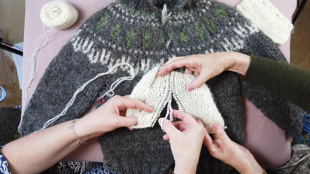 At the festival, they taught a series of workshops, and in our interview they walk us through how to design a Lopi sweater step by step. And how to turn one into a cardigan, either with button bands or with a zipper. They also share the fascinating history of Lopi wool and sweaters in Iceland. It’s such a fun interview, and I think you’ll pick up some really useful tips and inspiration from it.